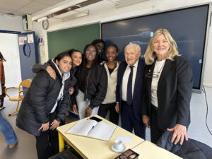 « Ce matin, nous avons rencontré Salomon Milgrom et sa fille Joëlle qui l’accompagnait. Tous deux nous ont raconté pendant deux heures la Seconde Guerre mondiale dans les détails, l’antisémitisme qu’ils ont pu vivre et nous ont présenté leur grande famille. » (Alice et Rose)