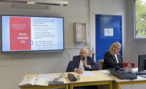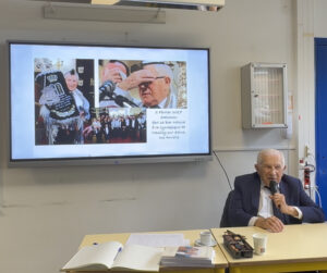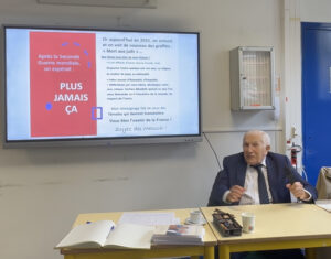 Le mardi 23 septembre, les trois classes de 1ère bac pro du lycée ont pu rencontrer Salomon Milgrom, rescapé de la Shoah. Accompagné de sa fille, il est venu témoigner sur son parcours : Né en Pologne, il a immigré en France avec sa famille dans les années 1930 pour fuir l’antisémitisme dont ils étaient victimes dans leur pays natal. Âgé d’une dizaine d’années lorsque la 2e Guerre mondiale éclate, il fut victime des restrictions imposées aux Juifs vivant en France. Il échappa à la déportation en fuyant Paris et en étant caché avec d’autres enfants dans le Sud-Est de la France. Sa femme a elle aussi vécu le même parcours : arrivée en France avant la guerre, elle fut cachée dans la Sarthe. Des membres de leurs familles n’ont pas survécus et sont morts à Auschwitz.